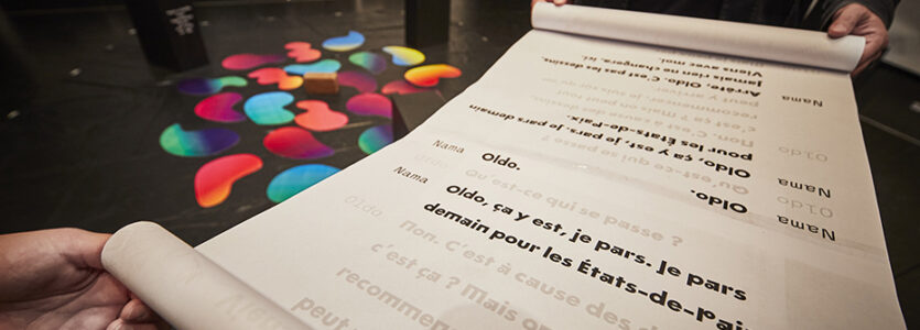 Et, puisque lire à haute voix c’est déjà dire à l’autre, nous voulons « dédramatiser » cette pratique en la sortant de l’exercice scolaire. Nous voulons transmettre le plaisir des mots, le désir de lire, l’audace de dire mais aussi l’importance de s’engager. Car ce récit n’a lieu que si chacun amène sa voix, sa présence, son caractère pour lui donner vie. La mise en voix partagée permet d’entrer de tout son corps dans l’histoire et de mieux ressentir et comprendre les enjeux des protagonistes.